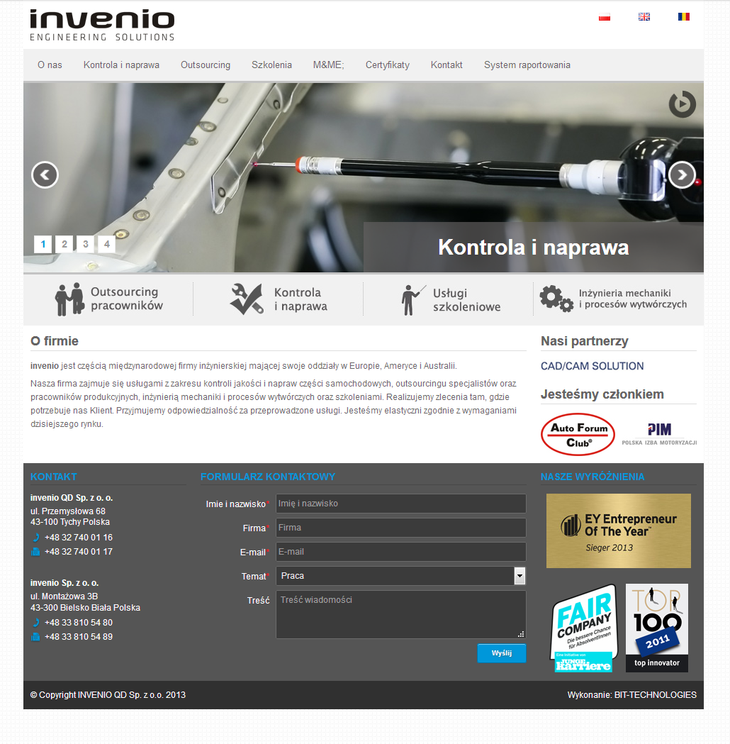 Invenio jest częścią międzynarodowej firmy inżynierskiej zajmującej się usługami z zakresu kontroli jakości i napraw części samochodowych, outsourcingu specjalistów oraz pracowników produkcyjnych. Zrozumienie specyfiki branży oraz złożonych procesów realizowanych w firmie pozwala nam zarówno na skuteczną pracę nad wizerunkiem klienta, jak i budowaniem narzędzi informatycznych dla niego.