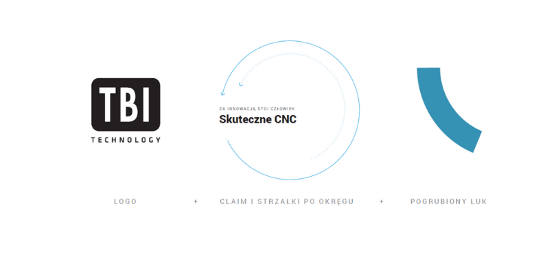 Motyw główny, czyli kula, pokazuje markę jako partnera totalnego. Partnera, który oferuje wsparcie na każdym etapie decyzji zakupowej, wdrożenia produkcji i eksploatacji oraz optymalizacji. TBI nieustannie poszerza zakres działania firmy, by zapewnić klientom możliwość wielowymiarowej współpracy. Takiej, która będzie odpowiadać na ich realne problemy i potrzeby. Firma jest nastawiona na dostarczenie najskuteczniejszych rozwiązań z wykorzystaniem CNC, dlatego w swoich działaniach dąży do rozwoju i ulepszania linii produkcyjnych swoich klientów. Czyni to poprzez optymalizację na każdym etapie wdrożenia i eksploatacji maszyn. Współpraca z klientami ma charakter ciągły, ponieważ optymalizacja nigdy się nie kończy. Po jednym cyklu zmian następuje analiza i kolejny cykl. To właśnie półokrąg i strzałka w key visualu symbolizują cykliczność działań. Z kolei kolorystyka i połyskliwość (kosmiczne tło) nawiązuje do świata programowania, innowacji i technologii oraz wielu małych detali.